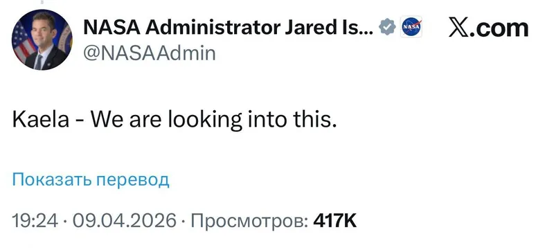 Письмо быстро разошлось в сети. В комментарии к посту на обращение отреагировал администратор NASA Джаред Айзекман.