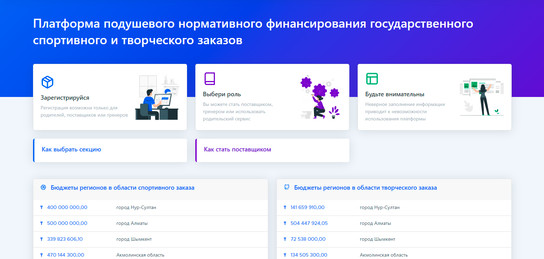 Платформа подушевого нормативного финансирования государственного спортивного и творческого заказов artsport.edu.kz пользуется большим спросом среди казахстанцев, сообщает портал Mail.KZ.