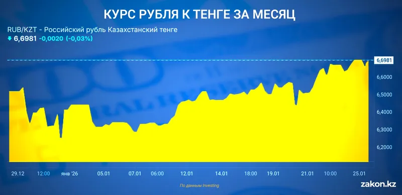 С начала 2026 года российский рубль неожиданно перешел в фазу агрессивного роста ко всем валютам мира. Особенно остро это ощущается в Казахстане: курс рубля к тенге за неполный месяц взлетел более чем на 4%, сообщает Zakon.kz.