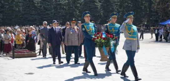 По традиции ее участники возложили венки к Вечному огню в Парке 28 гвардейцев-панфиловцев, почтив память павших воинов минутой молчания. Отдавая дань уважения героям, под звуки духового оркестра студенты военной кафедры Казахстанско-Российского медицинского университета прошли торжественным маршем по площади у Мемориала Славы.