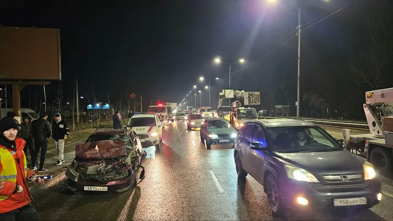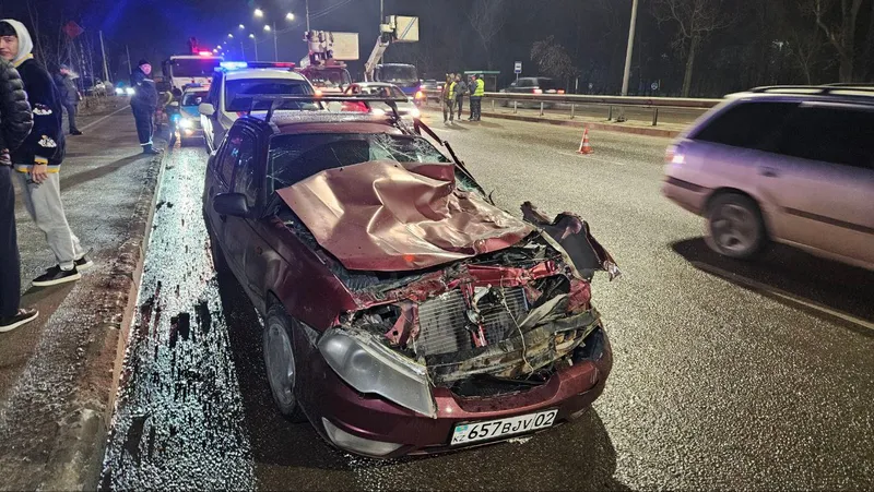 Ночью 16 декабря в Алматы на Северном кольце в микрорайоне Кокмайса шли осветительные работы. В этот момент на трассе случилось ДТП, сообщает Zakon.kz.