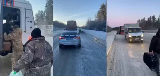 Транспортное средство направлялось в Шымкент. В салоне были граждане Казахстана, Кыргызстана и Узбекистана. С учетом минусовой температуры воздуха и риска для здоровья людей полицейские немедленно связались с МЧС и сообщили о происшествии.