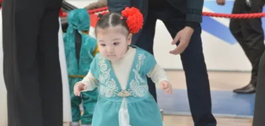 Сразу трое малышей – Даржан, Дина и Дария – сделали свои первые шаги в ходе обряда в Талдыкоргане. Мама тройни Сенбай Турсынбек доверила перерезать путы детям одному из самых уважаемых людей в регионе – инженеру-педагогу с 40-летним стажем Асету Жумадилову.