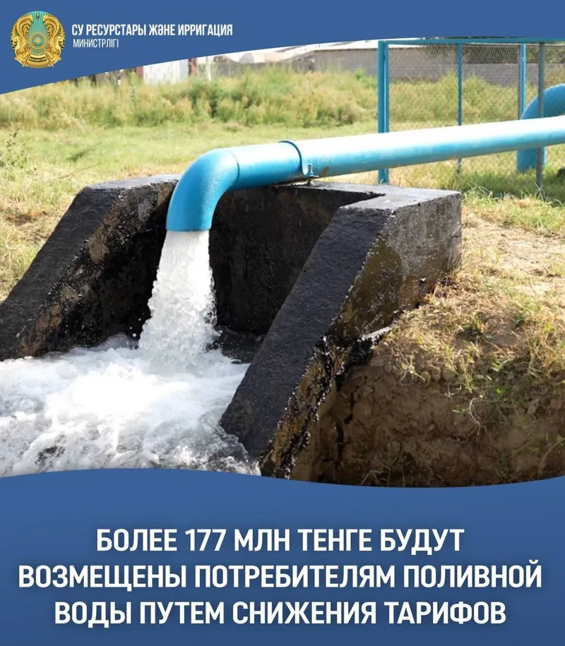 Более 177 млн тенге будут возмещены потребителям поливной воды путем снижения тарифов, сообщает Zakon.kz.