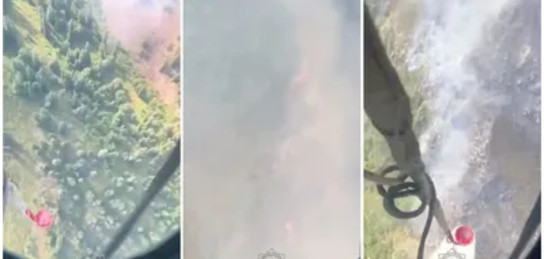 Отмечается, что тушение осложняется труднодоступной горной местностью.
