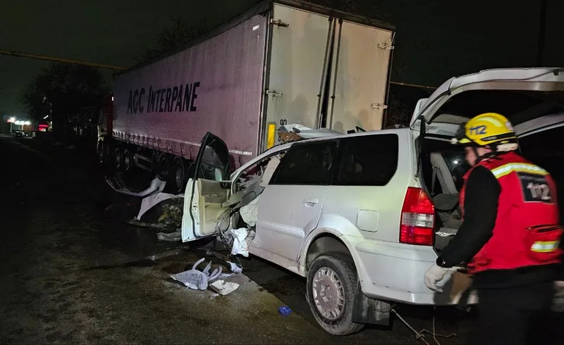 Праворульная машина с газовым оборудованием залетела под фуру в Алматы