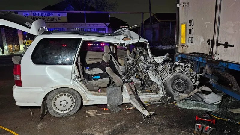 Ночью 15 декабря на ул. Шоссейная автомобиль Mitsubishi Shariot врезался в припаркованную на обочине фуру Shackman, сообщает Zakon.kz.