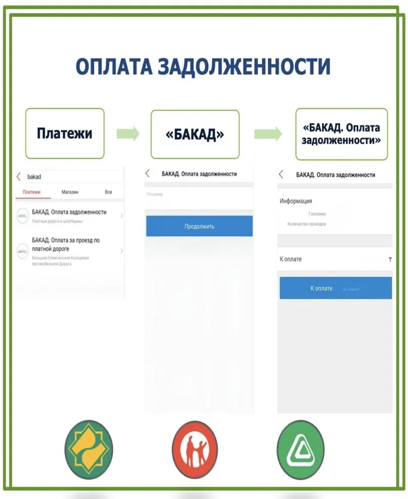 Во избежание возникновения сложностей в связи с запуском процедуры принудительного взыскания задолженности, настоятельно рекомендуем своевременно оплачивать проезд по БАКАД, а также регулярно проверять баланс и наличие задолженности через мобильные приложения банков-партнёров (Kaspi, Halyk, BCC).