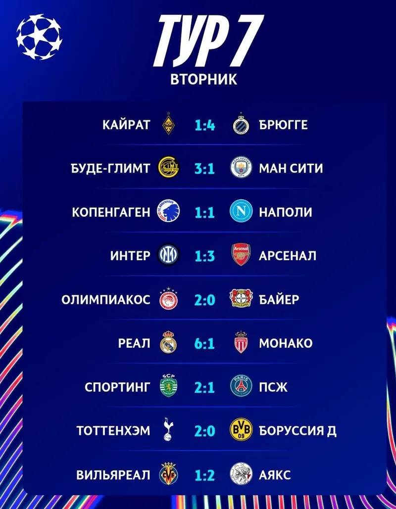 Ночью 21 января стали известны итоги встреч девяти матчей седьмого тура общего этапа Лиги чемпионов сезона-2025/2026, сообщает Zakon.kz.