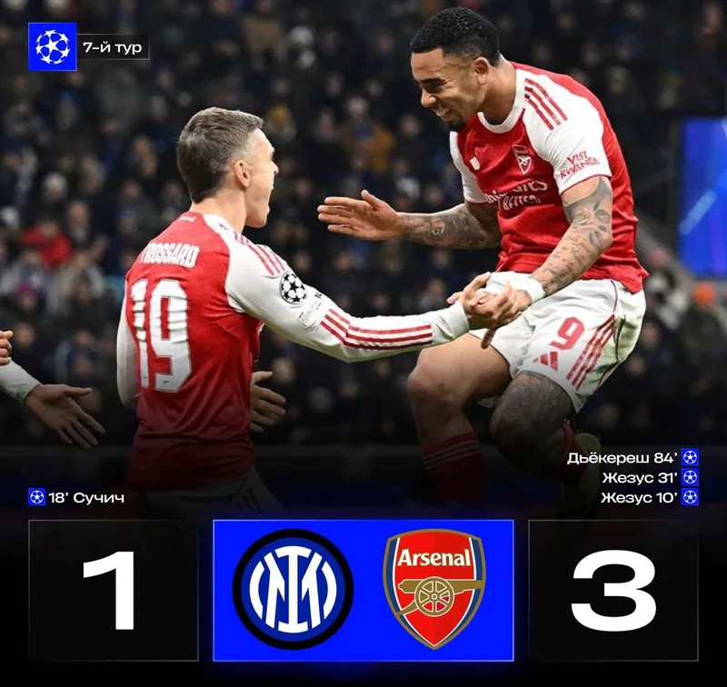 "Арсенал" победил "Интер" (3:1). После этой игры "Интер" с 12 очками находится на восьмом месте в турнирной табилице Лиги чемпионов, "Арсенал" лидирует с 21 очком.