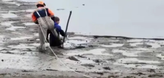 На место происшествия оперативно прибыли спасатели МЧС. Действуя профессионально и слаженно, они вытащили ребенка из вязкой грязевой массы.