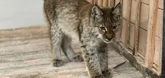 Детеныш рыси пришел к людям в области Абай, его нашли в одном из дворов села Жыланды Бескарагайского района, сообщает Zakon.kz.