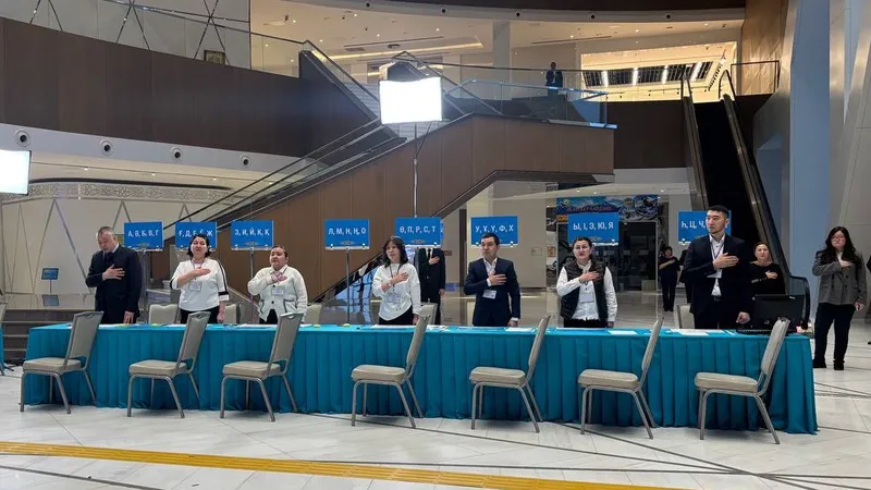 Ровно в 7:00 двери участков открылись, и в зале прозвучал гимн Казахстана.