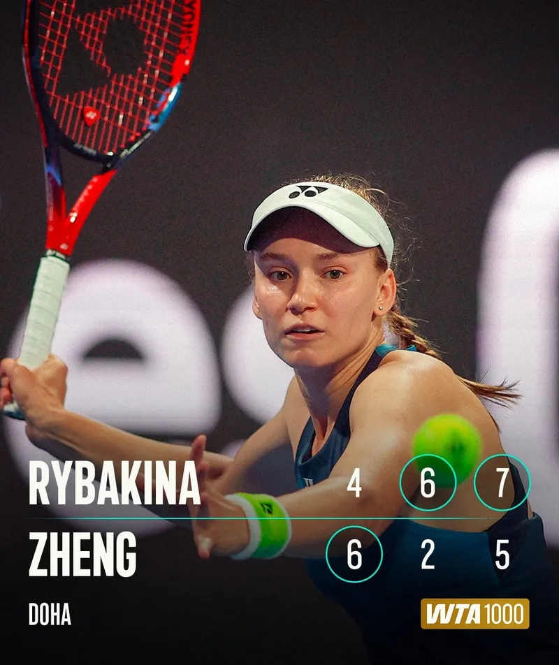 11 февраля на турнире WTA-1000 в Дохе третья ракетка Казахстана Елена Рыбакина обыграла олимпийскую чемпионку 2024 года из Китая Чжэн Циньвэнь, сообщает Zakon.kz.