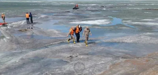 На озере Шандаксор в Павлодарской области двое рыбаков оказались в опасной ситуации – их резиновую лодку зажало между льдинами, а рыхлый весенний лед отрезал путь к берегу, сообщает Zakon.kz.