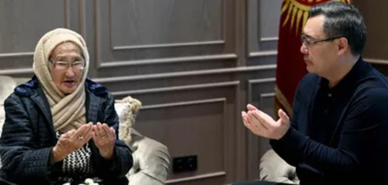 Президент Кыргызстана Садыр Жапаров встретился со своей первой учительницей Кенешкан Шаменовой, сообщает Zakon.kz.