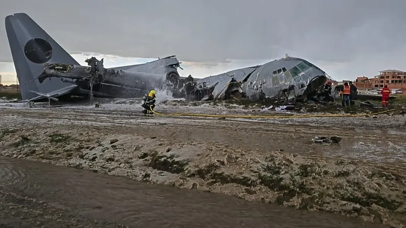 По предварительным данным, самолет выкатился за пределы взлетно-посадочной полосы, задел автомобили в городе Эль-Альто, рядом с Ла-Пасом, и остановился на соседнем поле.
