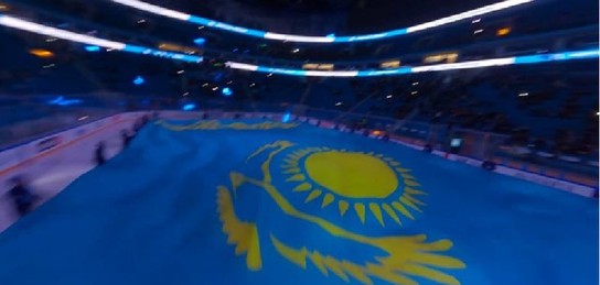 Самый большой флаг Казахстана раскрыли перед хоккейным матчем в Астане