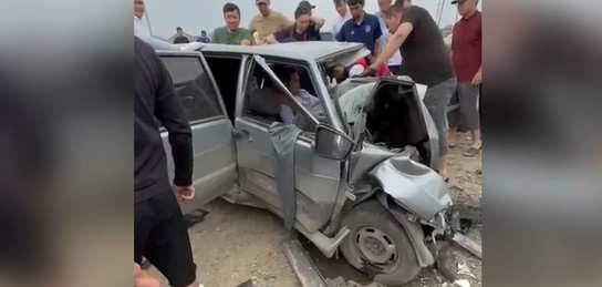 Как говорилось в описании ролика, авария произошла в селе Кызылбалык Атырауской области.