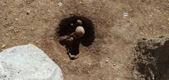 Во французском городе Дижон рядом с игровой площадкой был обнаружен вертикально сидящий и выглядывающий из круглой ямы скелет, сообщает Zakon.kz.
