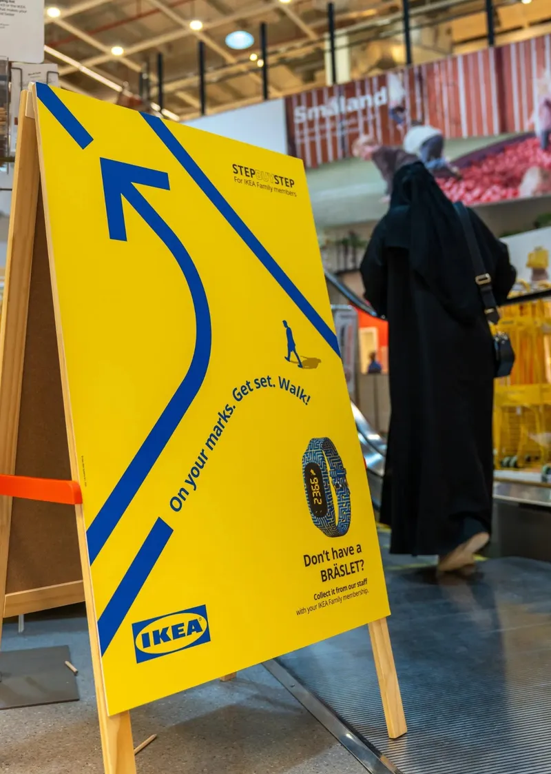 Шведский ритейлер IKEA запустил кампанию “Step Buy Step”, в рамках которой клиенты могут получить скидку 10%, если пройдут не менее четырех тыс. шагов внутри своих магазинов в Эр-Рияде, Джидде, Медине и Даммаме, сообщает Zakon.kz.