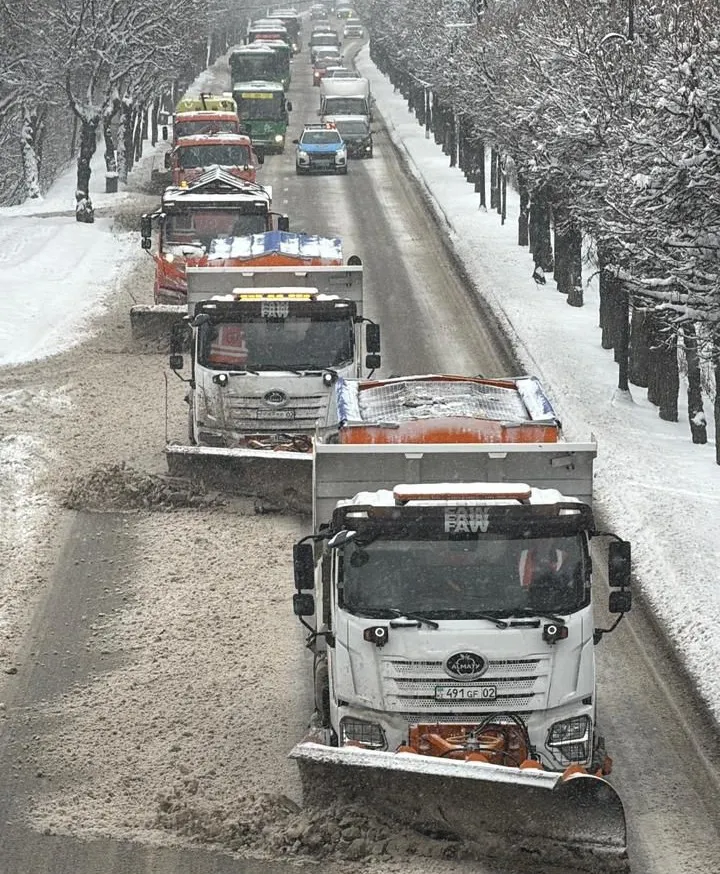 В связи с продолжающимся снегопадом принято решение о дополнительном усилении. В ночь с 25 на 26 февраля дополнительно привлекаются еще 1340 человек, в том числе 500 сотрудников ГКП "Алматы Тазалык" и 840 работников подрядных организаций. Таким образом, суточный выход составит 1250 единиц спецтехники и 4050 дорожных рабочих.