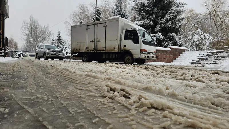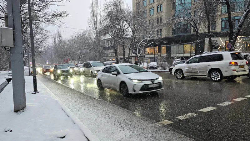 В Алматы уже вторые сутки идет снег. Город накрыло похолодание: на улицах слякоть, временами налетают порывы ветра, а местами образуется гололед.