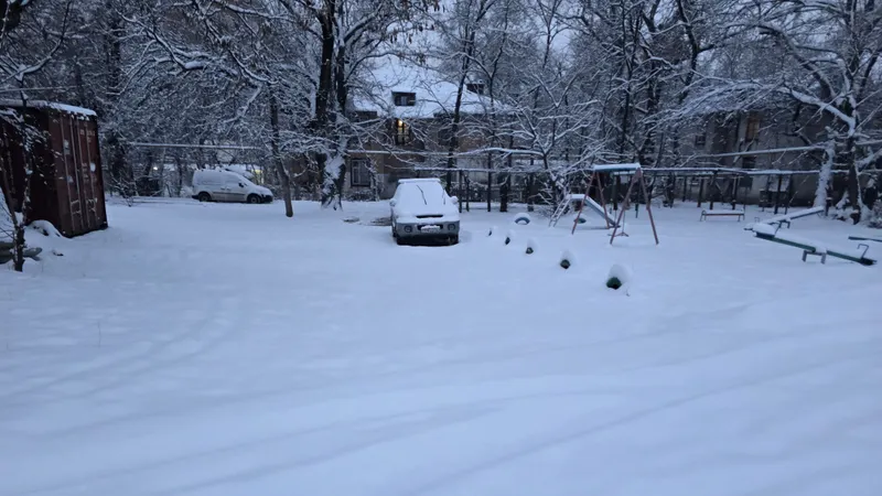 Утром 25 февраля горожане проснулись и увидели последствия непогоды. За несколько часов Алматы оказался под плотным слоем пушистого снега, что заметно осложнило дорожную обстановку.