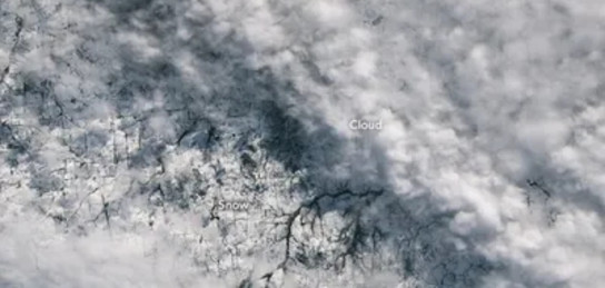Благодаря просветам в облаках спутник Landsat 8 сделал снимки заснеженной местности.