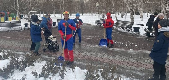 Супергерои из Marvel и DC чистили снег на улицах Алматы