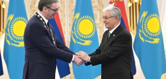 По данным Акорды, в своем выступлении на церемонии награждения Касым-Жомарт Токаев назвал Александра Вучича видным государственным деятелем и истинным лидером, который, опираясь на поддержку народа, уверенно ведет свою страну по пути прогресса.