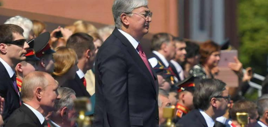 Токаев стоя приветствовал казахстанских военных на параде в Москве