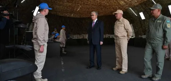 "После церемонии открытия министр обороны генерал-лейтенант авиации Даурен Косанов презентовал главе государства инновационный учебно-тренировочный комплекс подготовки операторов FPV-дронов и летного состава, оснащенный современными тренажерами и симуляторами".