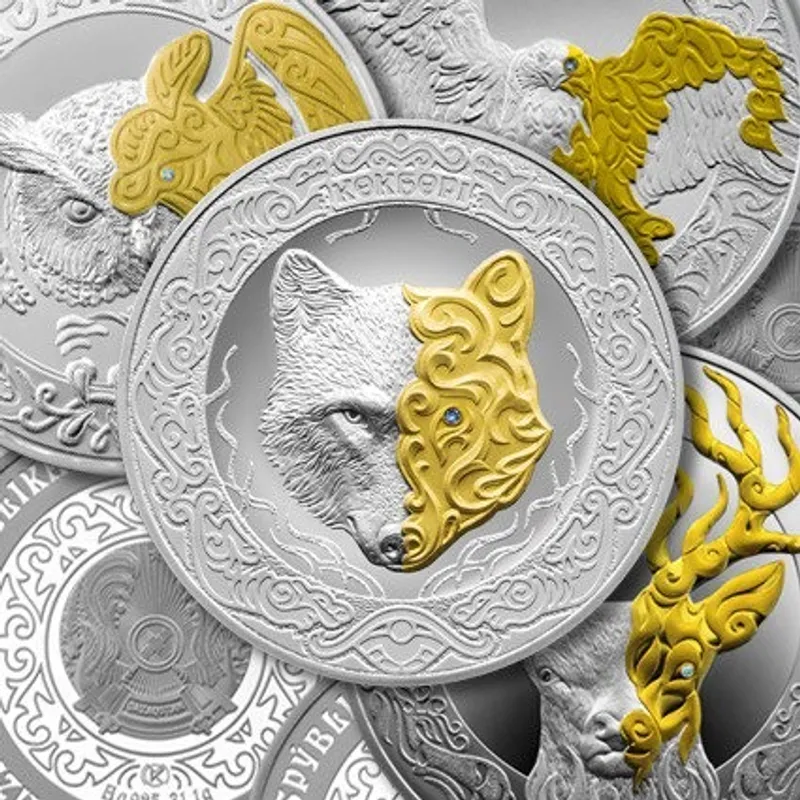 Так, в 2018 году начался выпуск серии монет "Культовые животные – тотемы кочевников". Сейчас в серию входят семь наименований монет – Kókbóri (Небесный волк), Úki (Филин), Buǵy (Олень), Aqqý (Лебедь), Búrkıt (Беркут), Túie (Верблюд) и Aiý (Медведь).