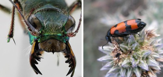 Обитает на территории нашей страны одновременно красивый и страшный жук-скакун с серповидными челюстями, которые чаще всего раскрыты. Он очень кровожадный и может съесть жертву размером намного больше себя.