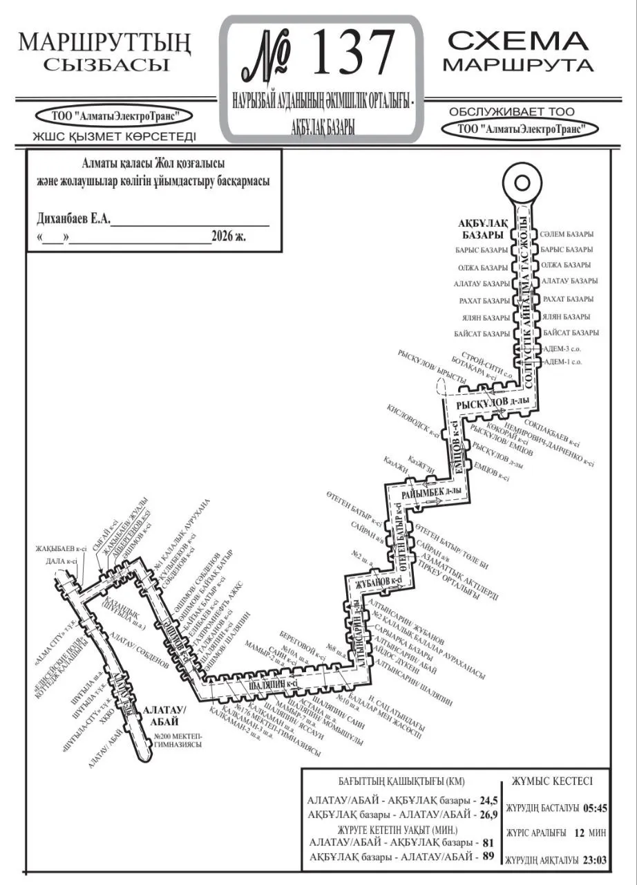 "С 1 мая вносятся изменения в схемы движения маршрутов №27, №118, №137. Теперь автобусы будут следовать по обновленной схеме движения: ул. Толе би – пр. Алатау – далее по маршруту, без заезда на ул. Жунисова и ул. Кенжетаева".