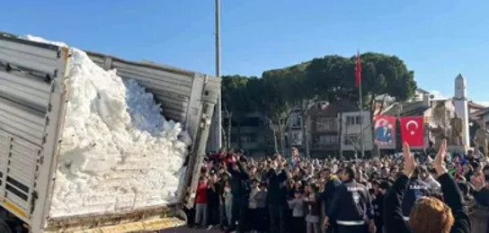 "Мы пообещали детям, что привезем им снег. Я попросил префекта района Одемиш в провинции Измир поделиться снегом. Радость детей для нас ценнее всего", – сказал мэр города Бурак Зенджирджи.