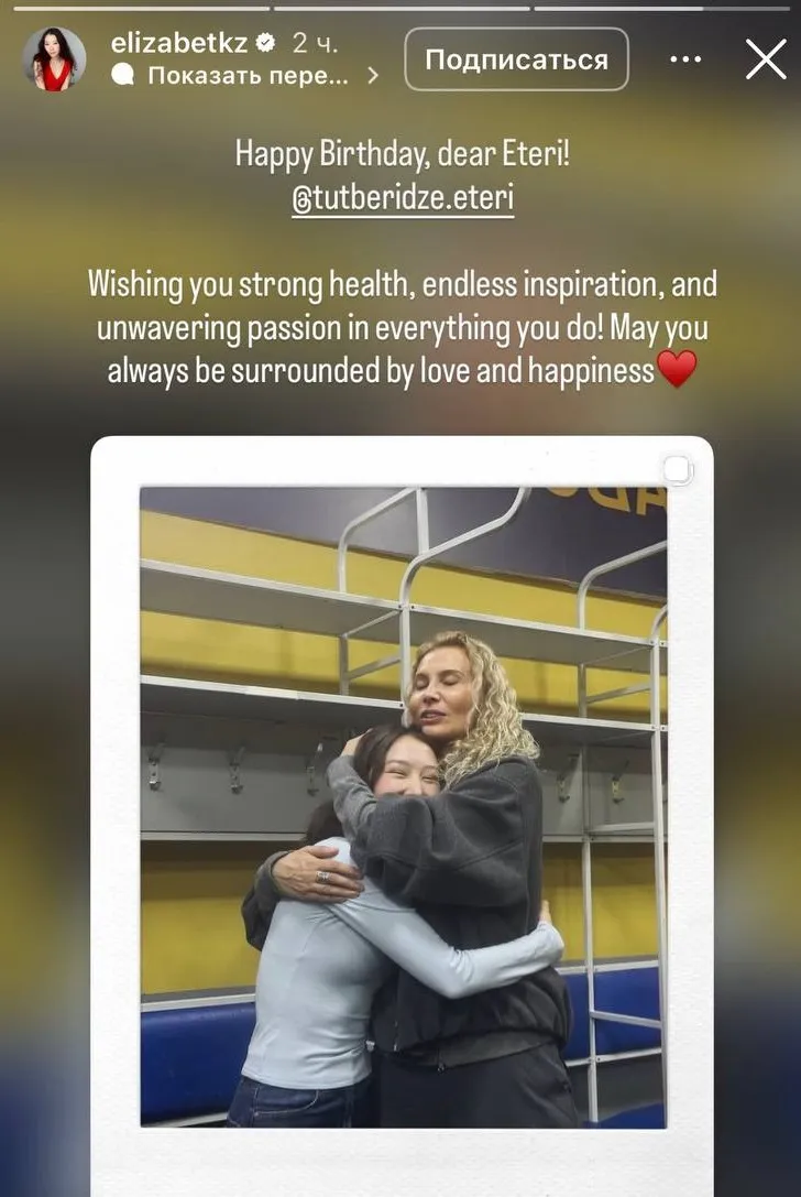 "С днем рождения, дорогая Этери! Желаю вам крепкого здоровья, бесконечного вдохновения и непоколебимой страсти во всем, что вы делаете! Пусть вас всегда окружают любовь и счастье", – подписала совместную фотографию Турсынбаева.