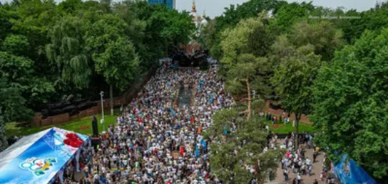 Фотограф Максим Золотухин на своей странице в Facebook выложил панорамный снимок, сделанный 9 мая 2025 года в алматинском парке имени 28 гвардейцев-панфиловцев. С высоты птичьего полета видно, как тысячи жителей собрались на патриотической акции "Батырларға тағзым" с портретами родственников – героев Великой Отечественной войны.