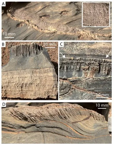 Микроскопические поперечные сечения показали, что внутри туннелей иногда встречаются слоистые минеральные структуры, потенциально связанные с условиями окружающей среды во время прокладки туннелей. В микротуннелях отсутствуют разветвления, следы фотосинтеза и морфологические признаки грибов.