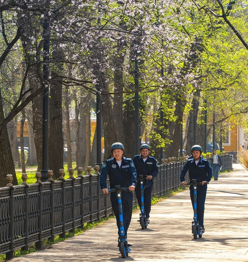 Улыбающиеся полицейские на самокатах в Алматы растопили сердца казахстанцев