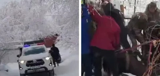 С помощью специального оборудования и троса спасатели совместно с жителями аккуратно подняли животное на поверхность и передали его владельцу.