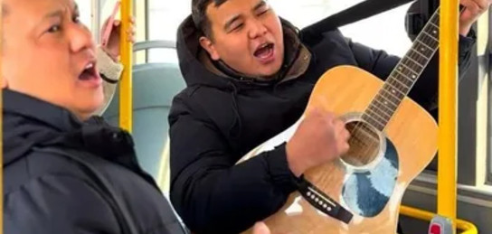 В Актау военный оркестр устроил концерт в автобусе в честь 80-летия Победы