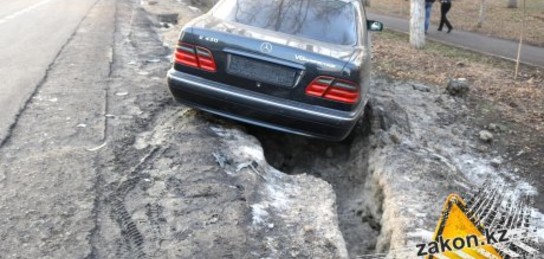 Авария произошла на пересечении улиц Толе би - Айманова. Как стало известно, по ул.Толе би в восточном направлении ехал автомобиль Suzuki Grand Vitara. На перекрестке водитель стал разворачиваться в обратном направлении. По какой-то причине он не заметил Mercedes, двигавшийся по ул.Толе би в западном направлении по автобусной полосе. В итоге произошло столкновение, в результате которого Mercedes отбросило на обочину, где машина задней частью провалилась в арык.