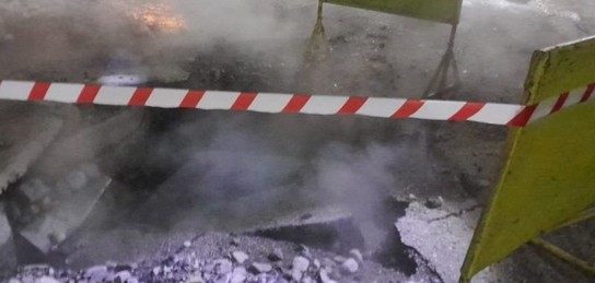 Как отмечают очевидцы, из-под земли забил фонтан горячей воды в несколько метров.
