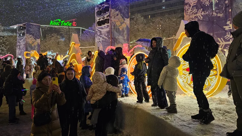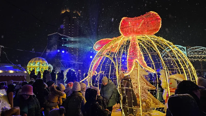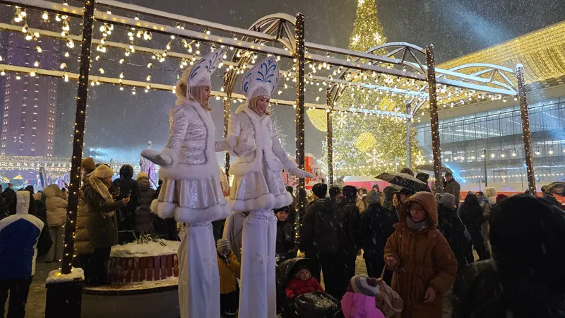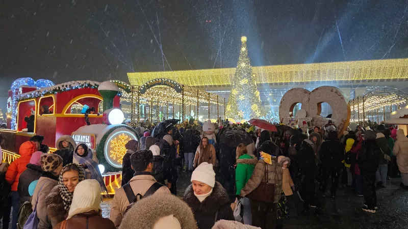 Праздничная программа собрала сотни алматинцев. Центральная площадь перед Дворцом Республики была украшена новогодними инсталляциями, световыми фигурами и праздничной иллюминацией, которая создавала атмосферу сказки и предвкушения Нового года.