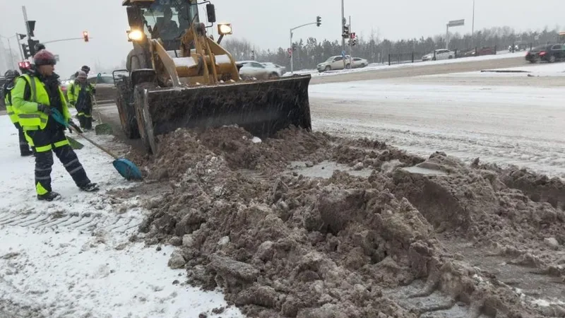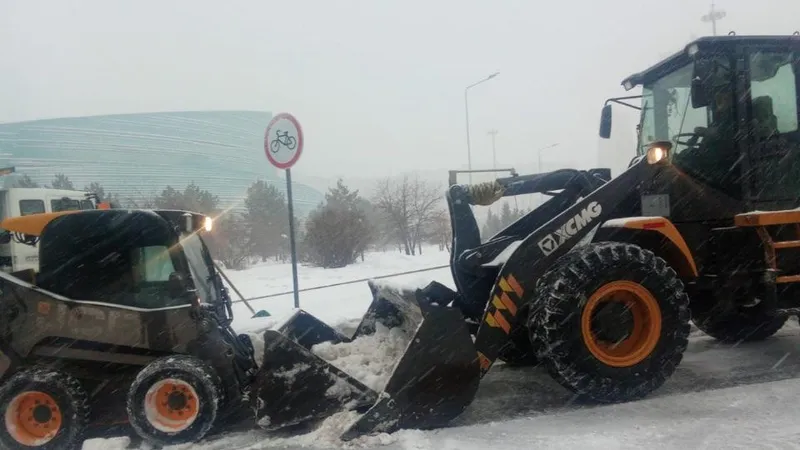 В Астане продолжается обильный снегопад, наблюдается гололед. Коммунальные службы города работают круглосуточно и без остановок.
