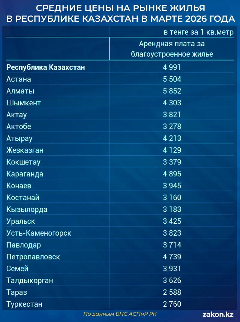 В марте 2026 года в стране впервые за долгое время одновременно подешевели и квартиры на вторичном рынке, и аренда. Самое заметное движение – в Алматы, где цены просели сразу на 2,6% за месяц, сообщает Zakon.kz.