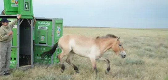 "Новая группа лошадей прибыла из Пражского зоопарка и венгерского национального парка "Хортобадь". Два военных самолета из Чехии и Венгрии, с четырьмя лошадьми на каждом борту, вылетели 2 июня. Животные преодолели долгий путь, занявший почти сутки. Самолеты приземлились в аэропорту города Аркалык рано утром 3 июня и еще 5 часов лошади пробыли в пути до центра реинтродукции копытных в государственном природном резервате "Алтын Дала". Здесь они проведут год в просторных загонах, прежде чем будут выпущены в дикую природу".