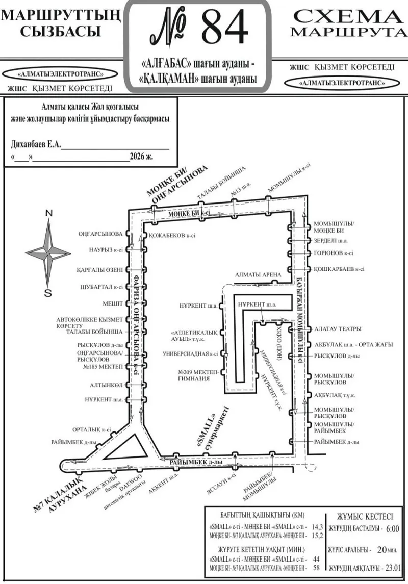 С 1 марта 2026 года в Алматы будут внесены изменения в схему движения маршрута №84А в микрорайоне "Нуркент", сообщает Zakon.kz.